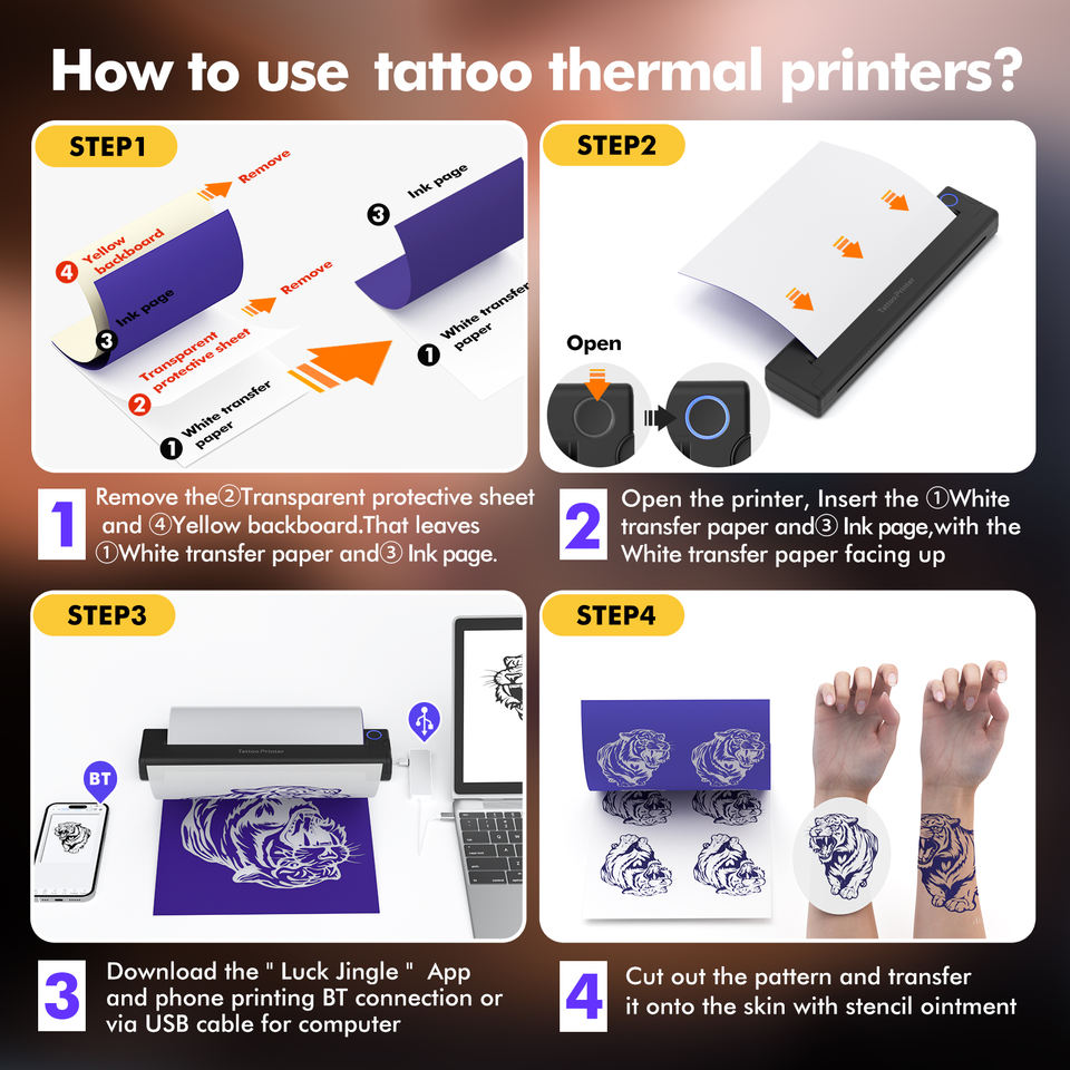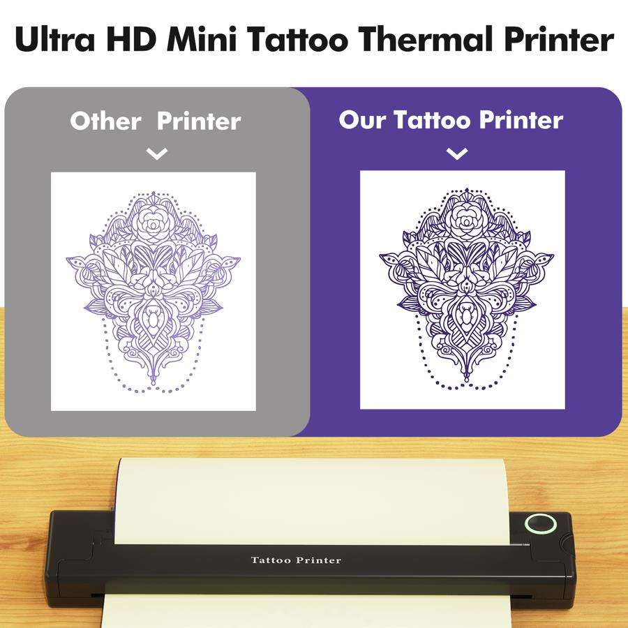 Imprimante à tatouages A4 personnalisée de haute qualité, design mini portable, 203 DPI haute définition pour téléphone ou ordinateur, transfert thermique de tatouages