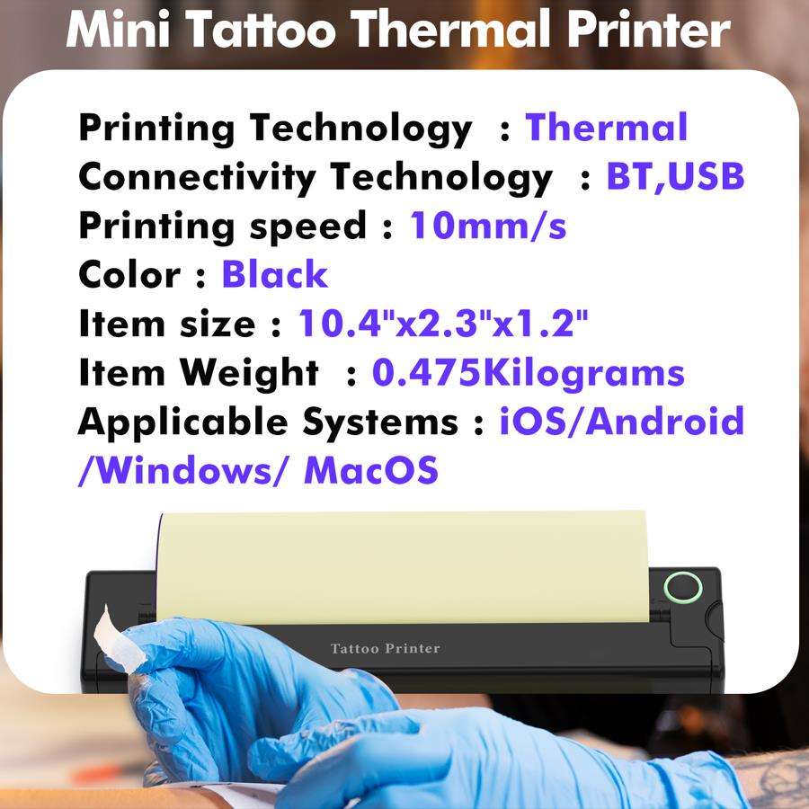 Accessoire spécification:1 * Imprimante 1 * Câble USB 1 * Manuel 10 * Papier de tatouage