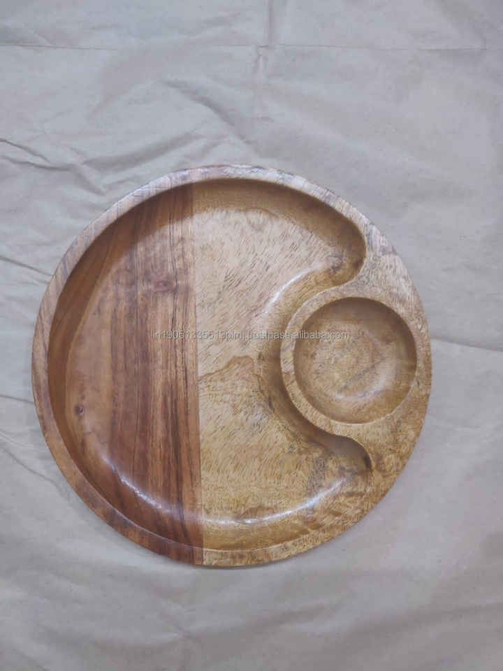 Assiette de service et plateau en bois d'acacia et de manguier de style américain, écologiques, de haute qualité, personnalisables en gros pour restaurants et hôtels