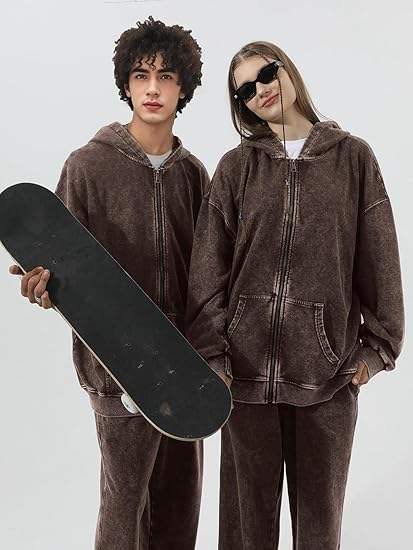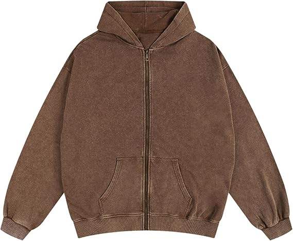 Sweat à capuche zippé sur mesure de haute qualité, délavé à l'acide, 100 % coton, pour homme, style vintage, hiver, coupe oversize, respirant
