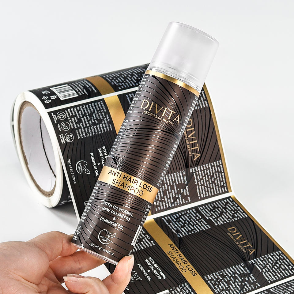 High Quality Custom Adhesive Bottle Labels, Luxury Cosmetic Bottle Stickers for Shampoo & Skincare Packaging metallic labels