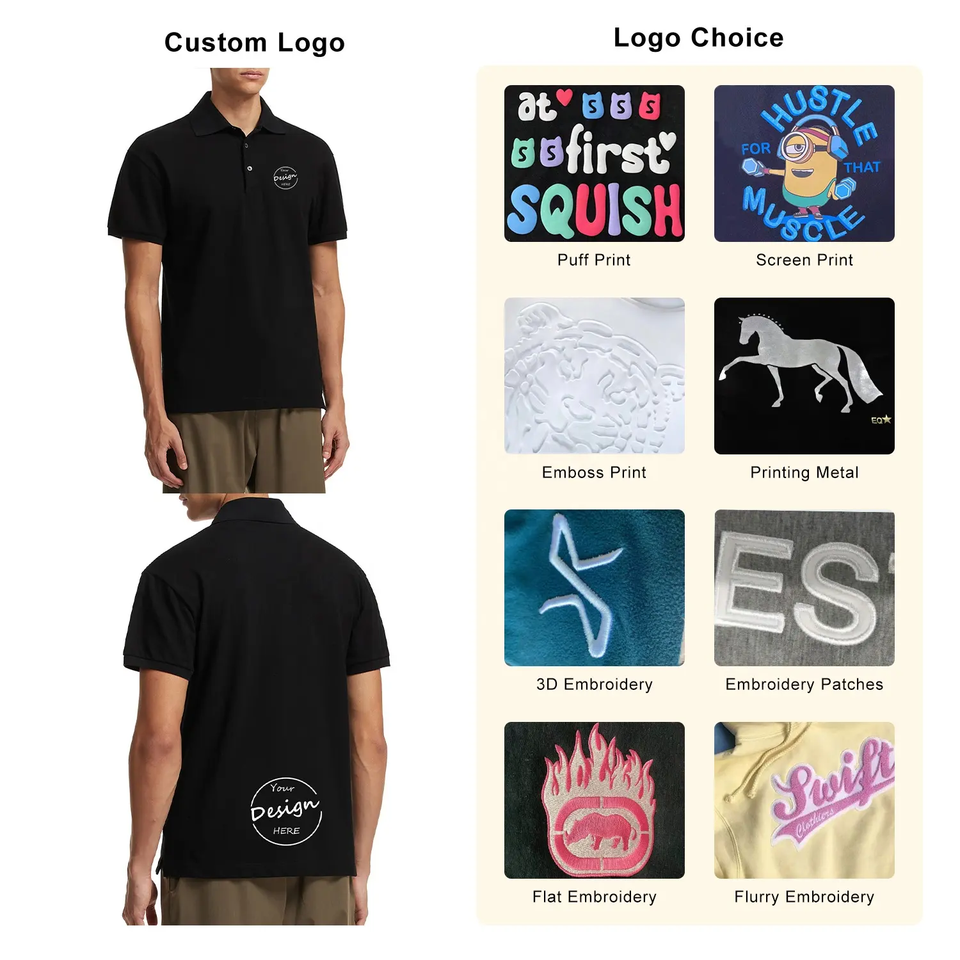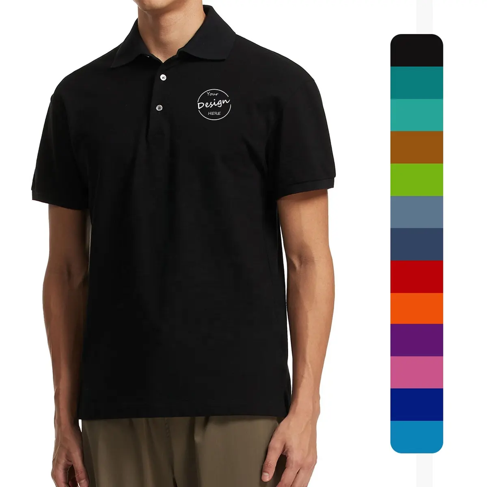 High Quality Custom Blank 65 Cotton 35 Polyester Anti-pilling Loose Men's Split Hem Shirt Black Formal Work Polo Shirt