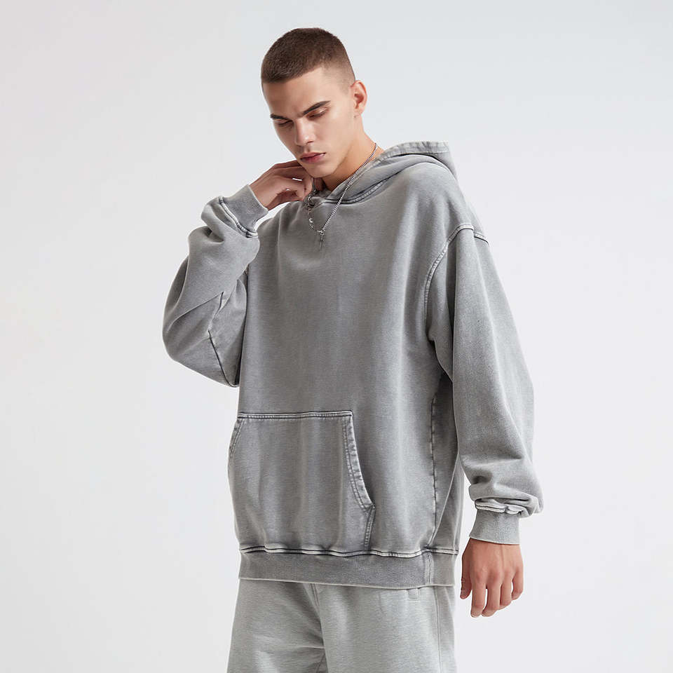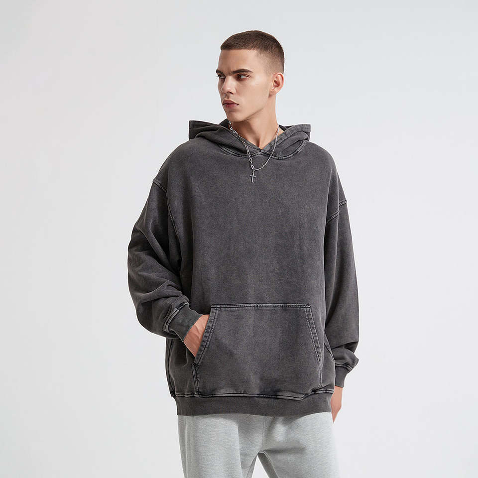 Sweat-shirts à capuche en molleton français vierge de haute qualité pour hommes, streetwear, sweats à capuche surdimensionnés à épaules tombantes pour l'usine