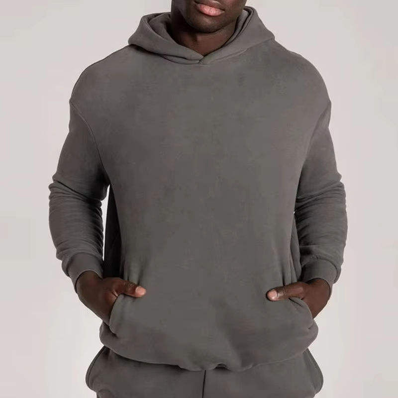Sweat-shirts à capuche en molleton français vierge de haute qualité pour hommes, streetwear, sweats à capuche surdimensionnés à épaules tombantes pour l'usine