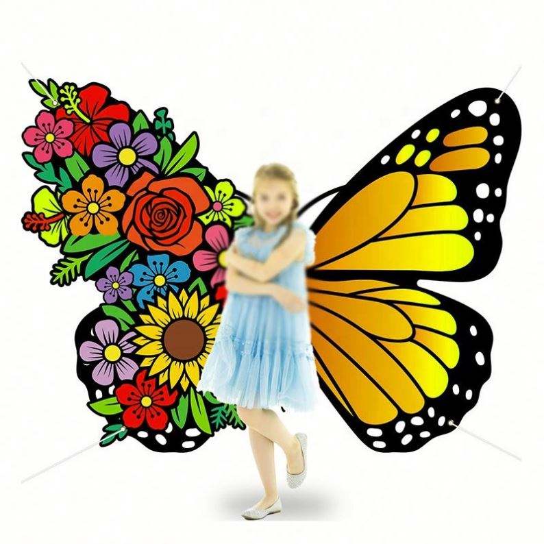 Drapeaux promotionnels personnalisés de haute qualité en tissu polyester avec logo sur mesure, en forme d'ailes de papillon