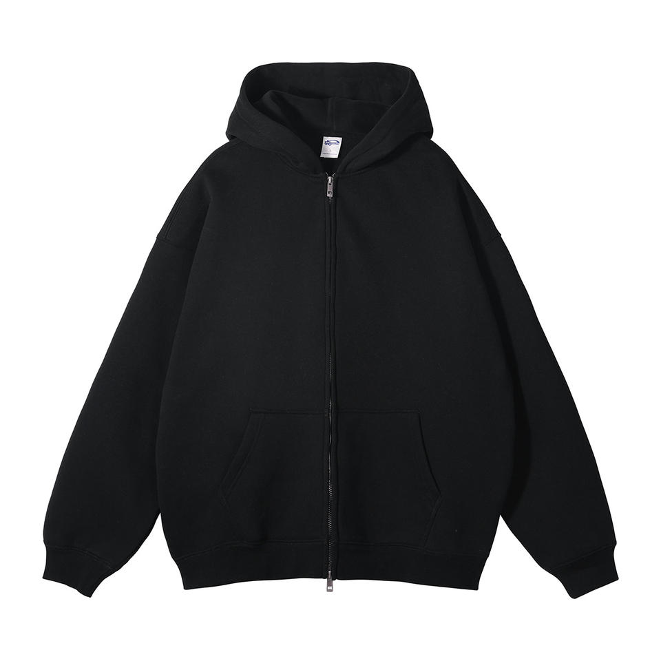 Sweat à capuche décontracté personnalisé de haute qualité avec logo imprimé en relief, coupe oversize, en coton, double fermeture éclair, molleton épais pour homme