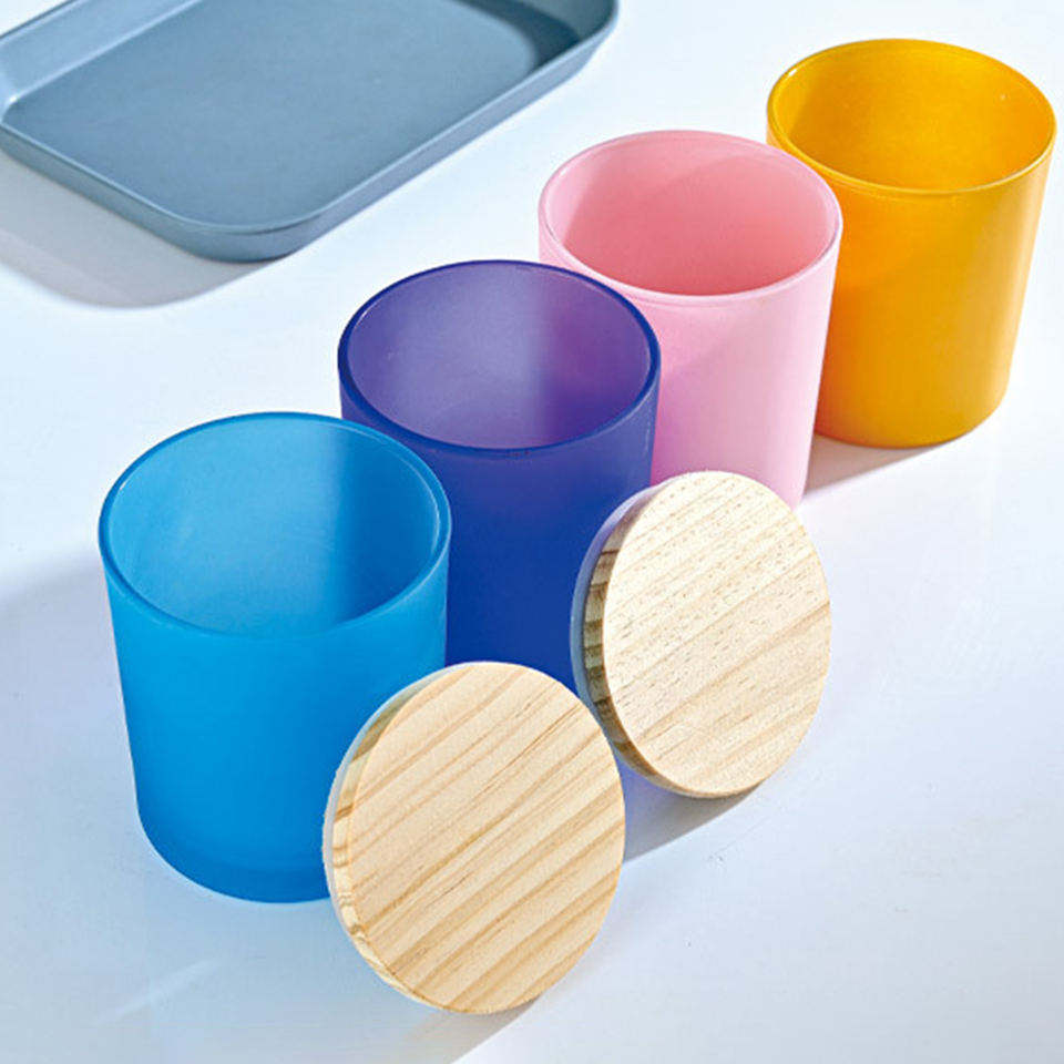 Pot à bougie en verre de haute qualité, personnalisé, coloré, 220 ml, 315 ml, 430 ml, avec couvercle en bambou.