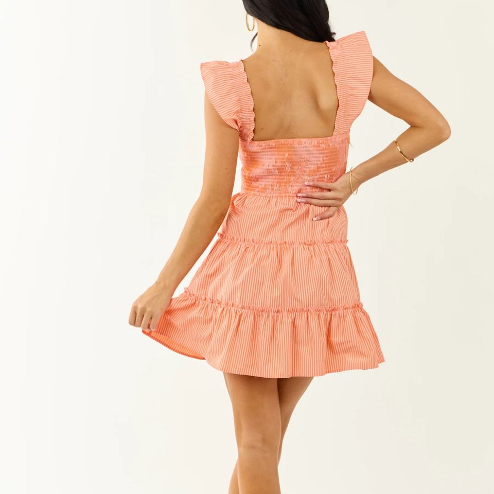 Robe d'été décontractée pour femme, mini-robe à volants en coton de haute qualité, à rayures, à plusieurs niveaux, avec détail smocké
