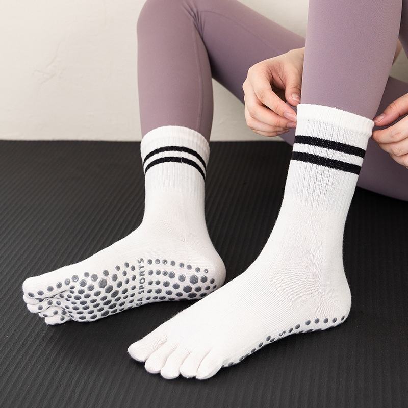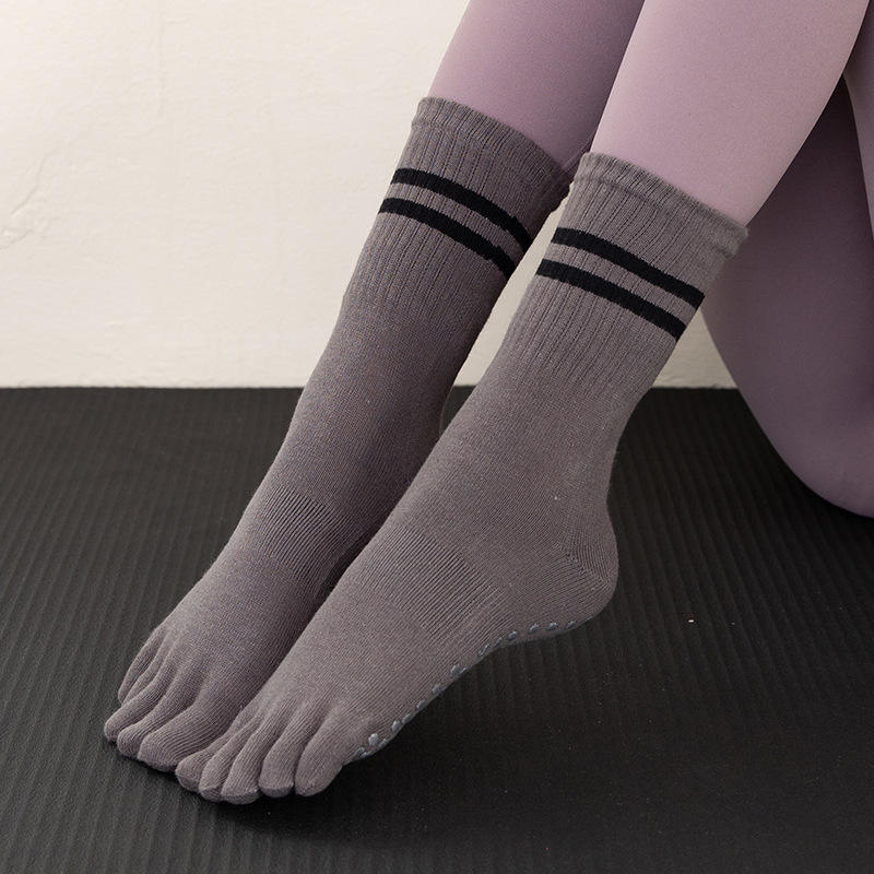 Haute qualité personnalisé coton équipage Yoga cinq doigts rayure Grip chaussettes respirant antidérapant athlétique Pilates femmes ODM disponible