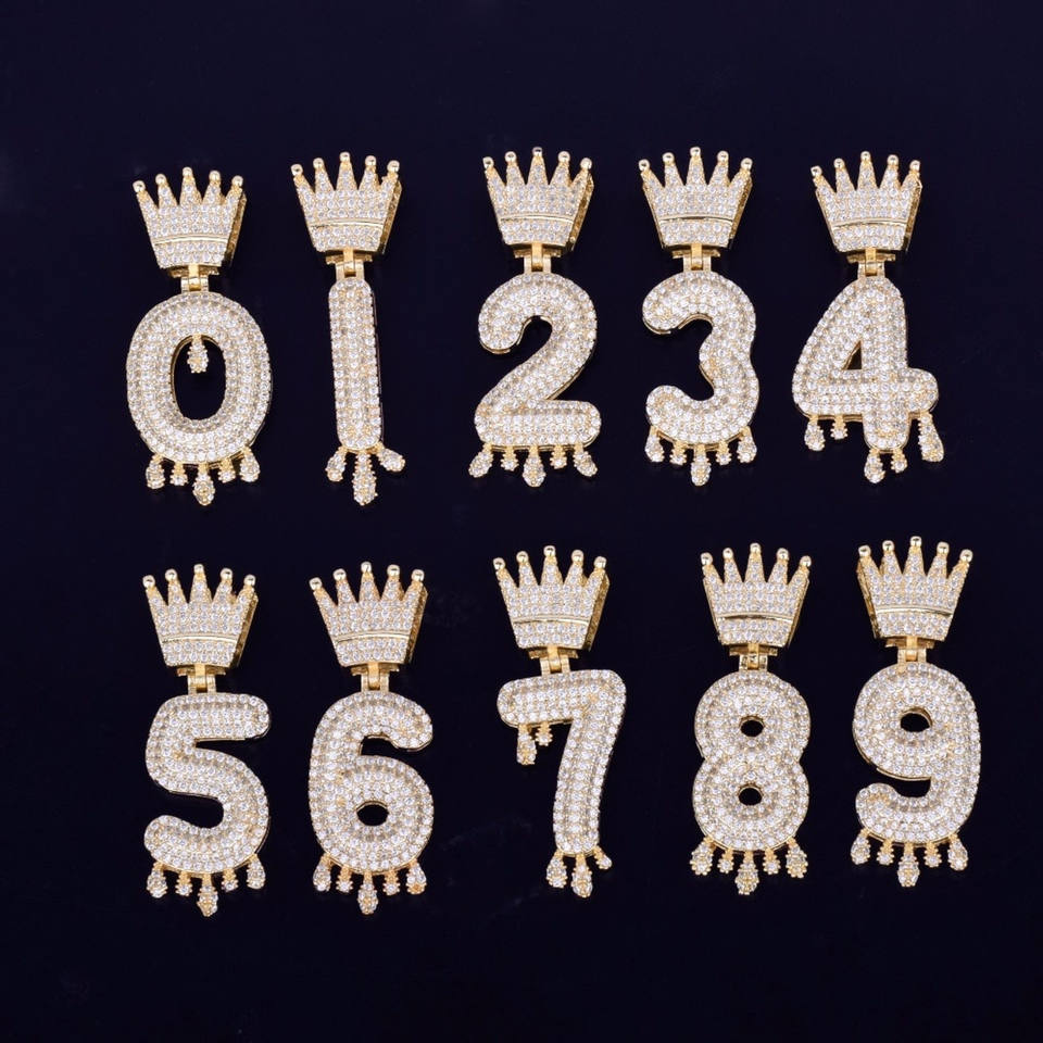 Pendentifs Hip Hop personnalisés de haute qualité en or 14K avec numéro de couronne nouveau style de lettre goutte à goutte glacé collier Moissanite