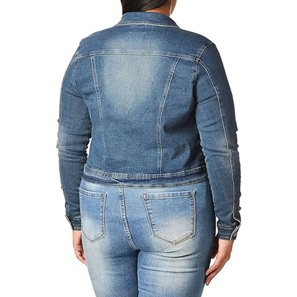 Veste en jean courte pour femme, 100 % coton, avec poches avant personnalisées de haute qualité, doublure en nylon réversible, service OEM