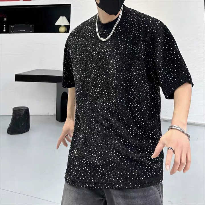 T-shirt strass de conception personnalisée de haute qualité pour hommes High Street Plus Size chemises pour hommes du Pakistan