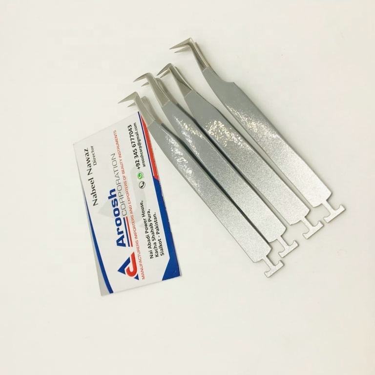 Wholesale Custom Designed Silver Stainless Steel Eyelash Tweezers High Quality Sustainable Pointed Tip Extension Tool Aroosh