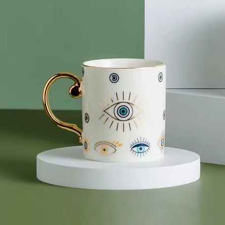 Mug en céramique de haute qualité, personnalisé, motif œil du diable turc, pour le petit-déjeuner, le lait, l'eau, le thé de l'après-midi, réutilisable et sans danger pour les aliments
