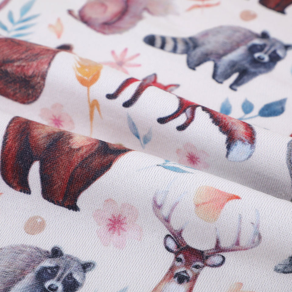 Conception d'animaux imprimés numériques personnalisés de haute qualité sur tissu polaire 100% coton pour enfants