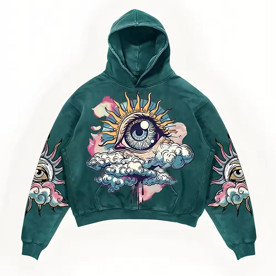 Sweat à capuche oversize personnalisé de haute qualité, coupe courte, effet vieilli, en molleton/coton, lavage vintage, impression intégrale, service OEM