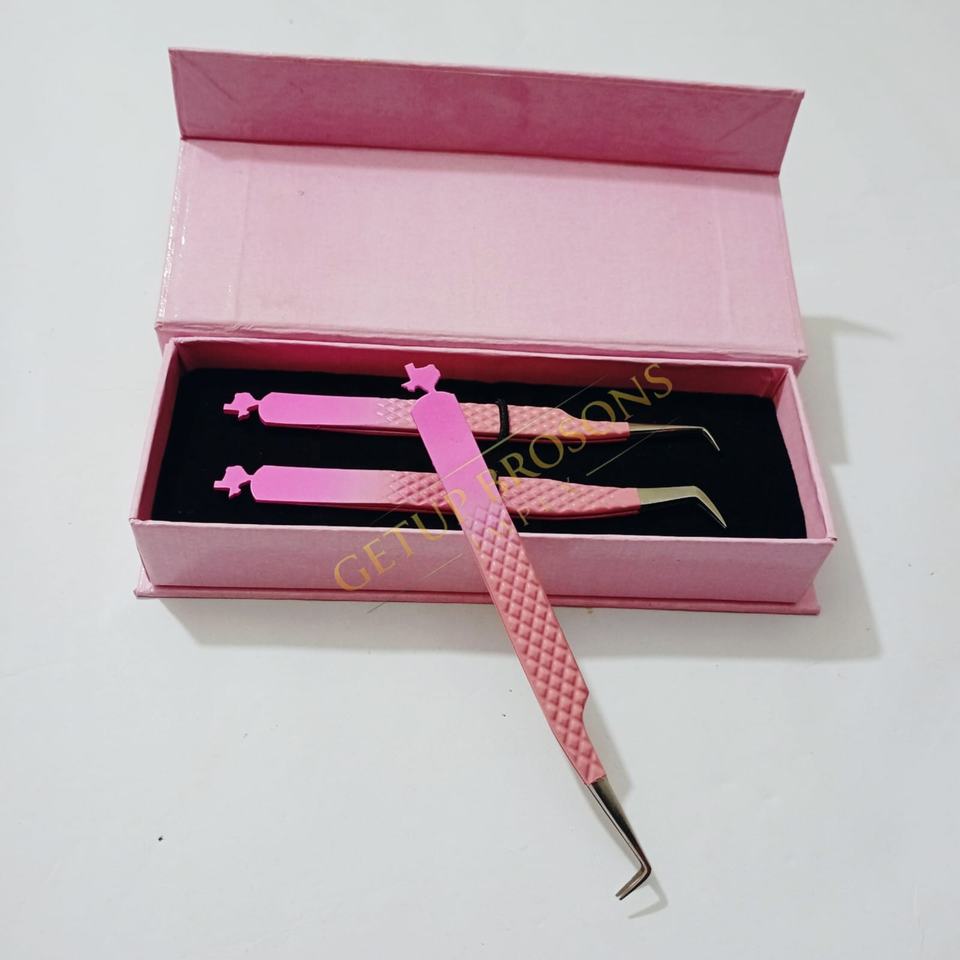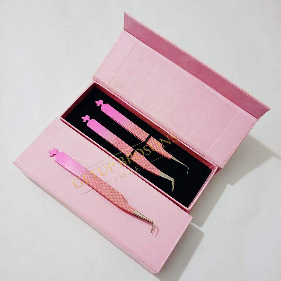 Pince à épiler pour cils de haute qualité, personnalisée, double couleur, à pointe lisse de 10 mm, en acier inoxydable, avec poignée diamantée, anti-magnétique