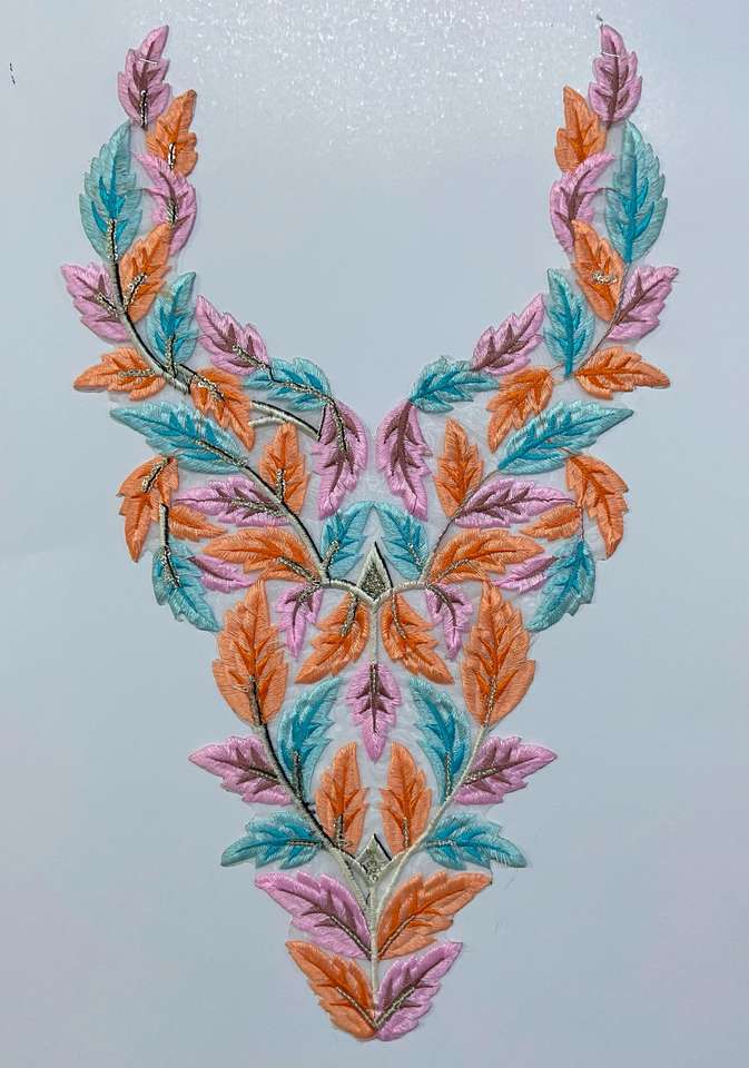 High Quality Custom Embroidered Sew-On Neck Patches Elegant Garments Decorative Applique Designs for Dresses Blouses-100%