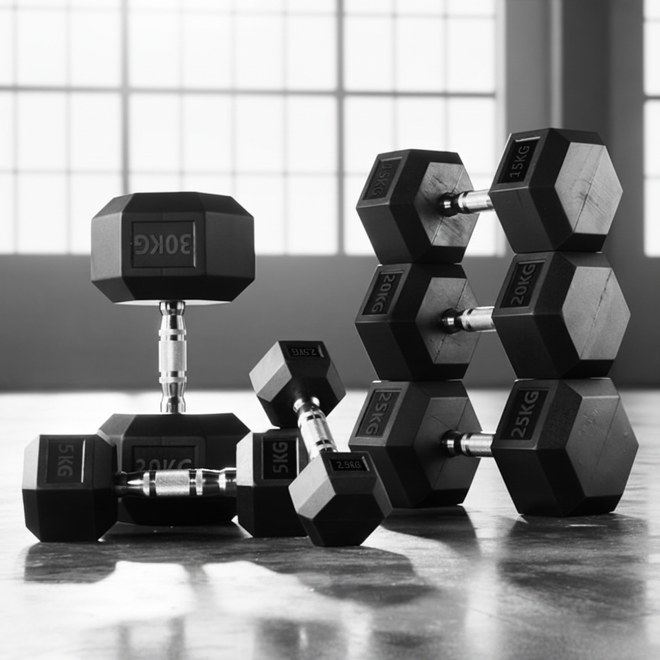 Équipement d'exercice personnalisé de haute qualité, haltères confortables pour la musculation, haltères hexagonaux en caoutchouc pour la musculation à domicile