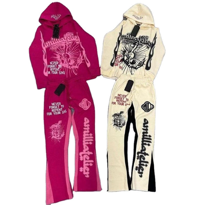 Ensemble de survêtement en molleton français personnalisé de haute qualité pour hommes, pantalon de survêtement vintage en coton, pantalon de survêtement évasé, streetwear, hiver, séchage rapide