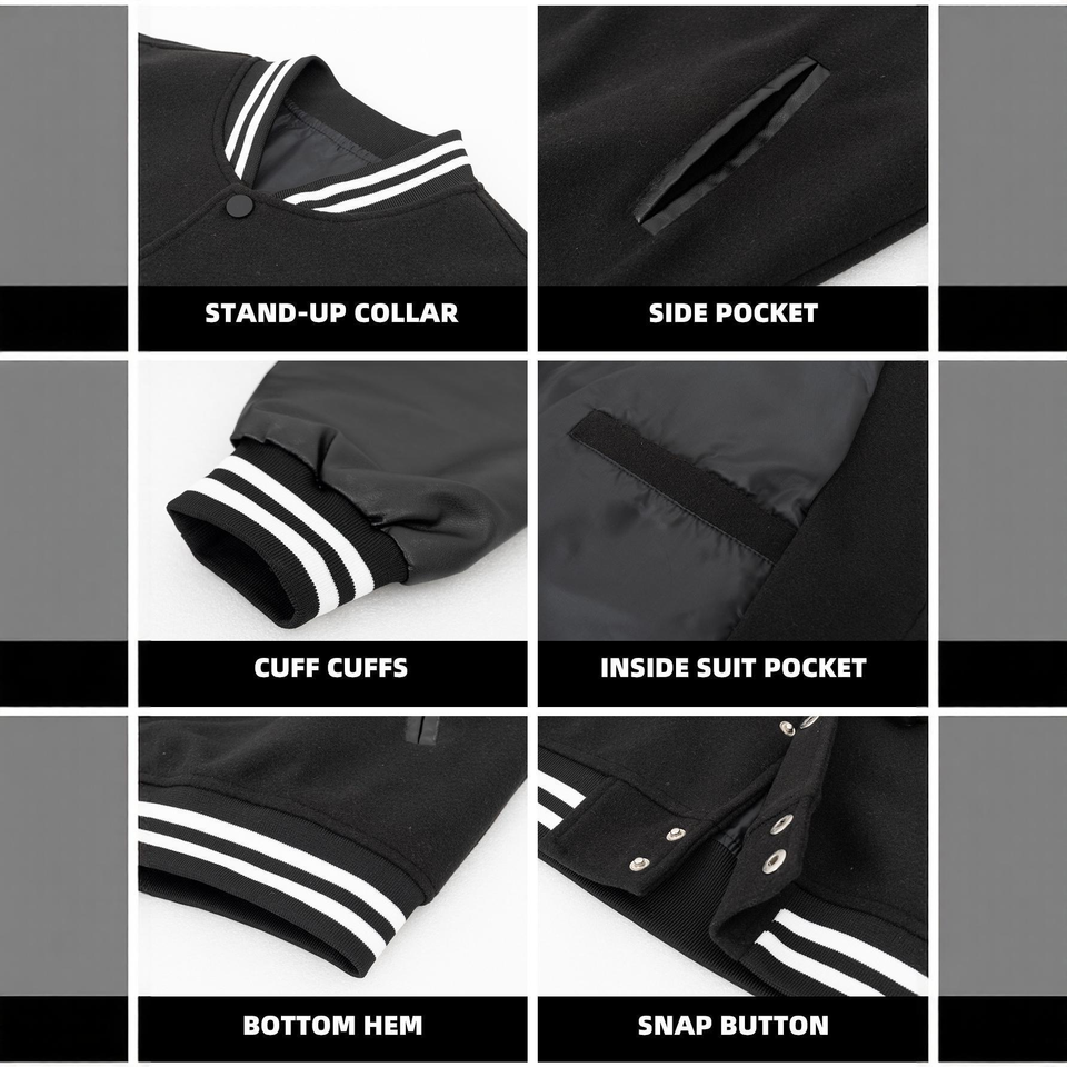 Vestes universitaires de baseball unisexes de haute qualité avec lettres 3D personnalisées brodées sur le devant, col en V et manches design