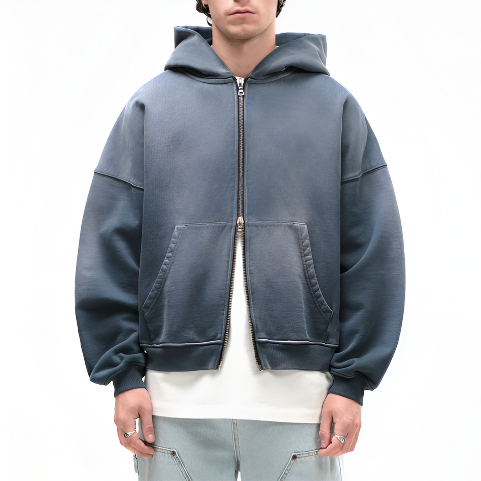Sweat à capuche en coton molletonné surdimensionné pour homme, personnalisé, entièrement zippé, imprimé, respirant, idéal pour l'hiver, à prix abordable