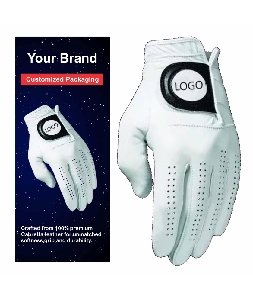 Gants de golf personnalisés de haute qualité en cuir de mouton blanc Cabretta Cuir véritable Emballage haut de gamme