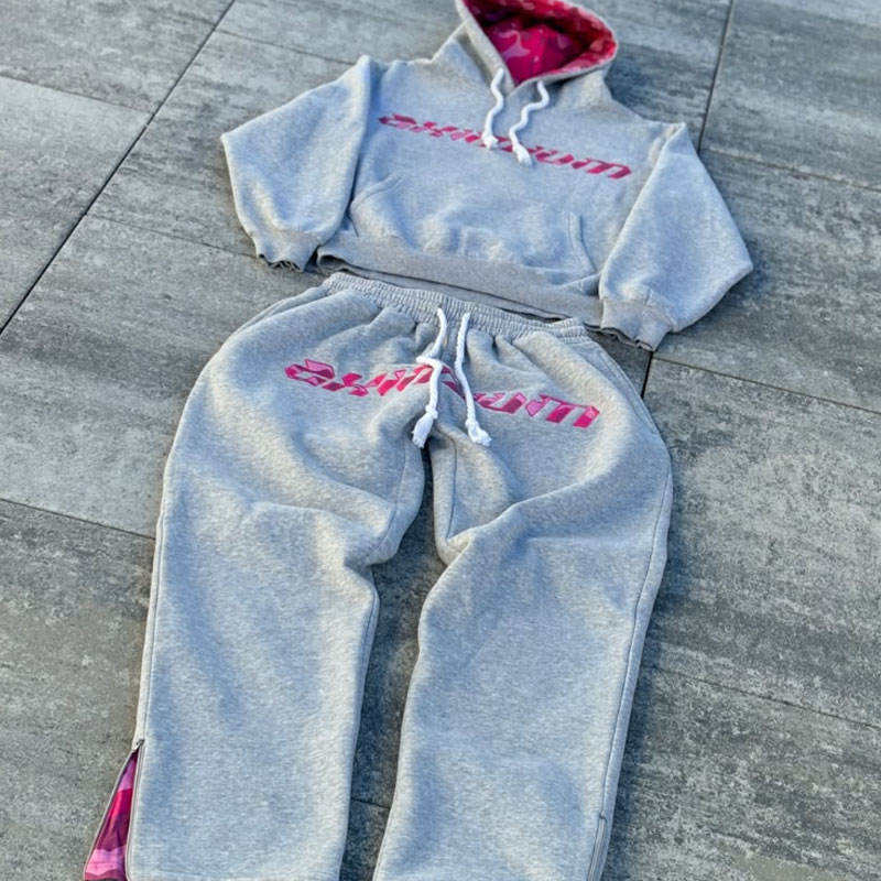 Ensemble de survêtement en coton épais de haute qualité, personnalisé, gris, poids lourd, 450 g/m², épaisses, surdimensionnées, épaules tombantes, cordon en coton, tissu éponge