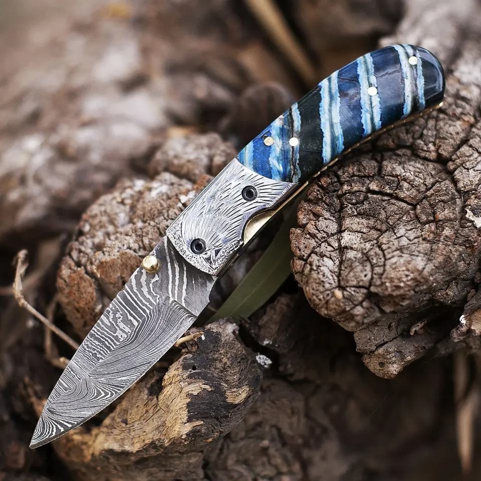 Couteau de poche en acier damas fait à la main de haute qualité avec gaine en cuir cadeau parfait pour Camping père OEM & ODM pris en charge