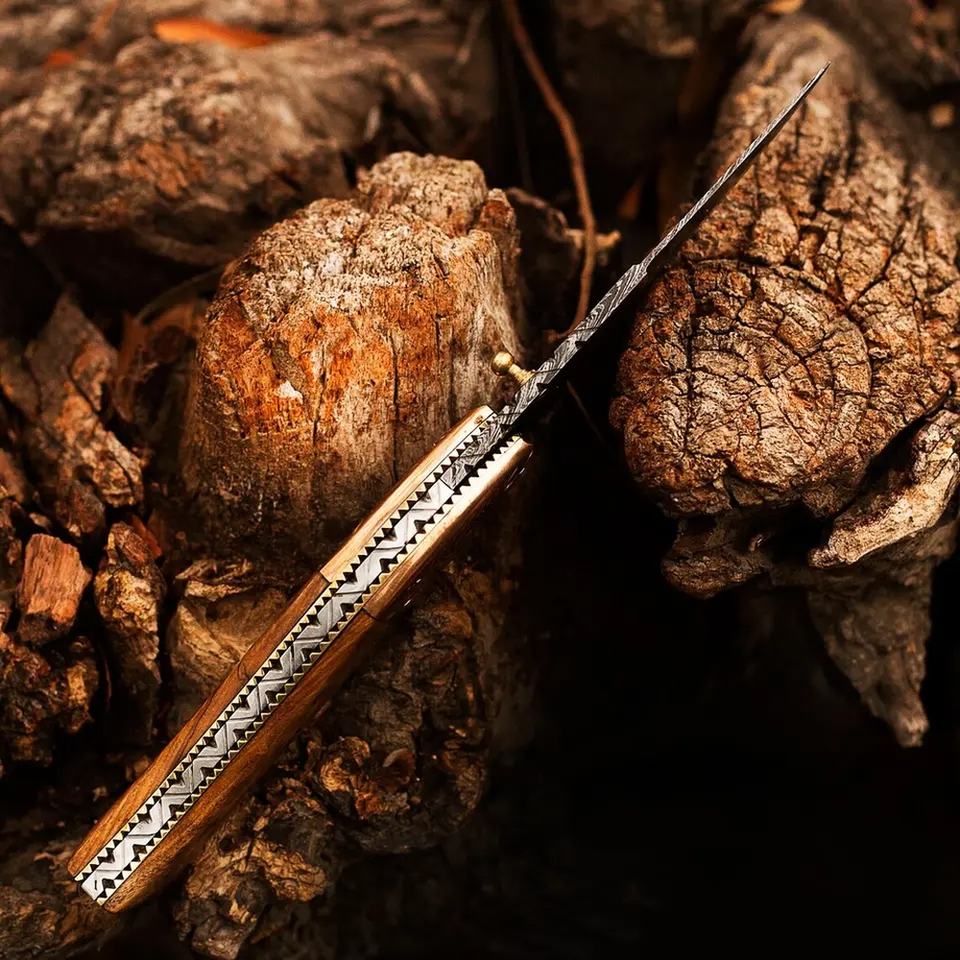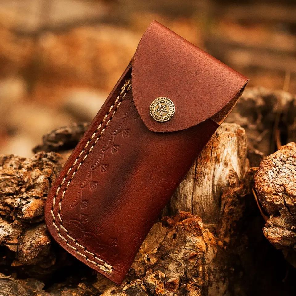 High Quality Custom Handmade Damascus Steel Pocket Knife with Leather Sheath Perfect Gift for Camping Father OEM & ODM Supported