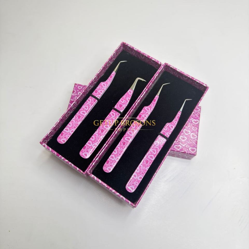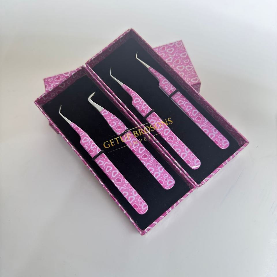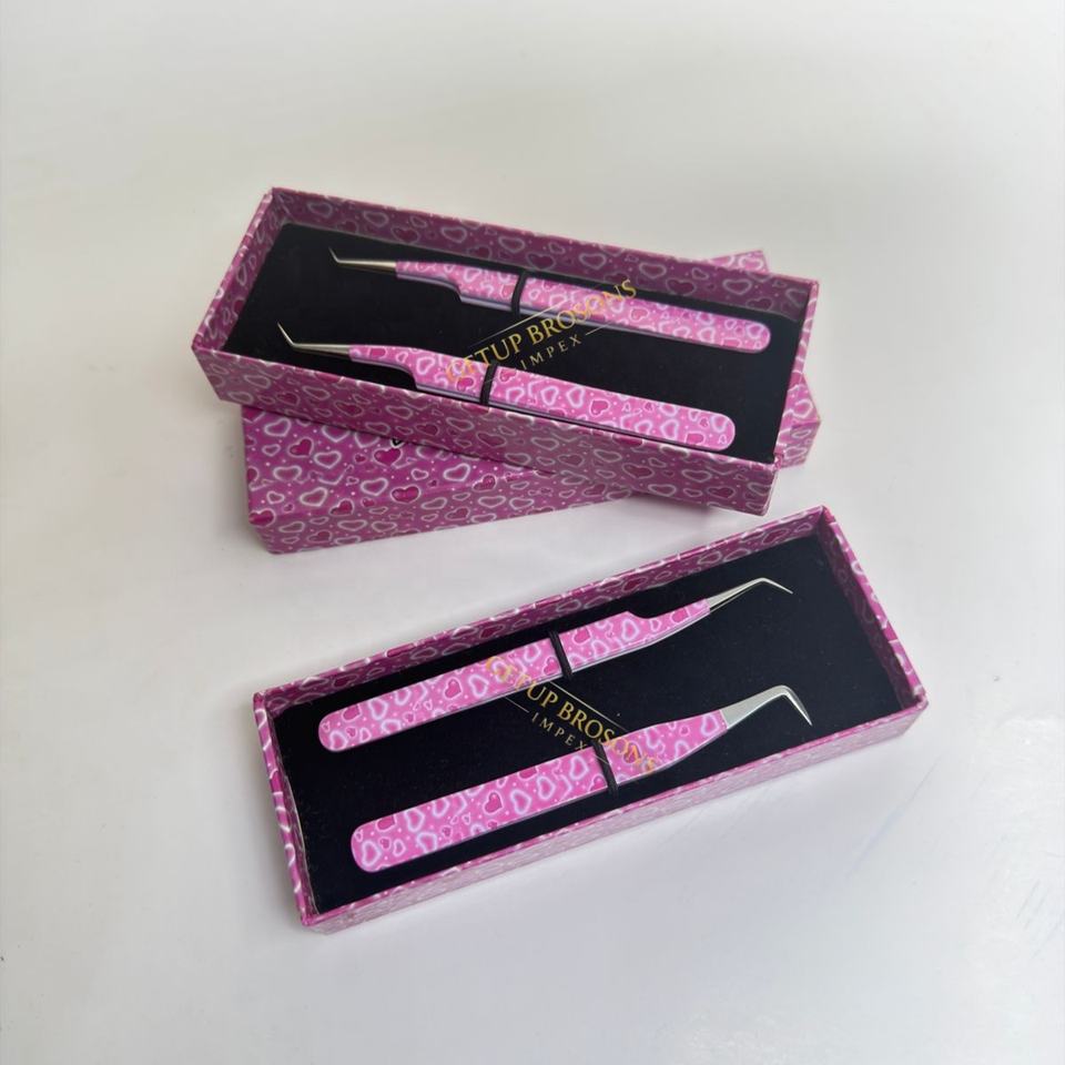 Pince à épiler professionnelle en acier inoxydable de haute qualité, avec revêtement en papier personnalisé en forme de cœur, isolation 90 Boot/45, pointe lisse de 10 mm et prise diamantée pour cils