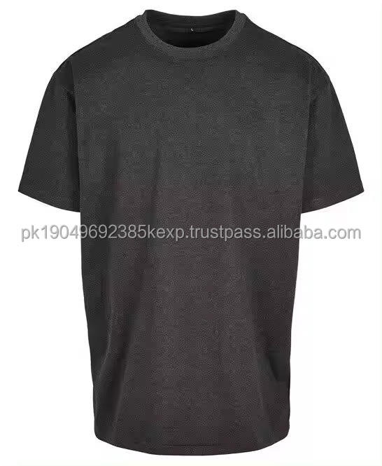 T-shirt pour homme en jersey teint en pièce de haute qualité, poids lourd, 100% coton, uni, col rond, surdimensionné, pour homme
