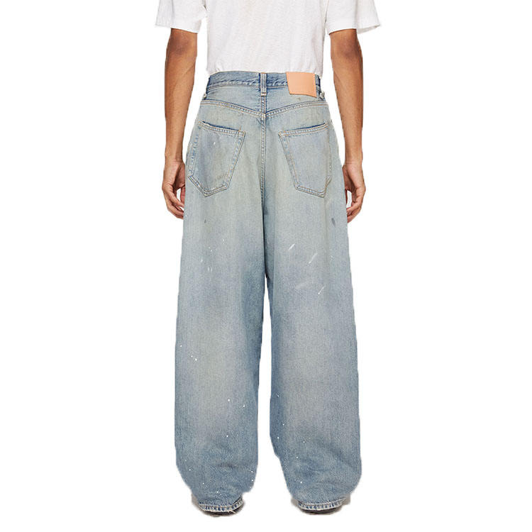 High Quality Custom High Streetwear Jeans Sun Fade Acid Washed Baggy Jeans Y2k Light Blue Distressed Jean Trousers for Men