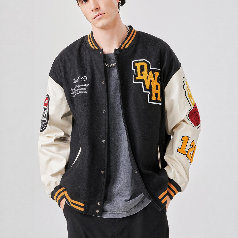 Veste de baseball de haute qualité avec logo personnalisé, col montant, style streetwear, logo sur le devant, broderie chenille OEM, unisexe