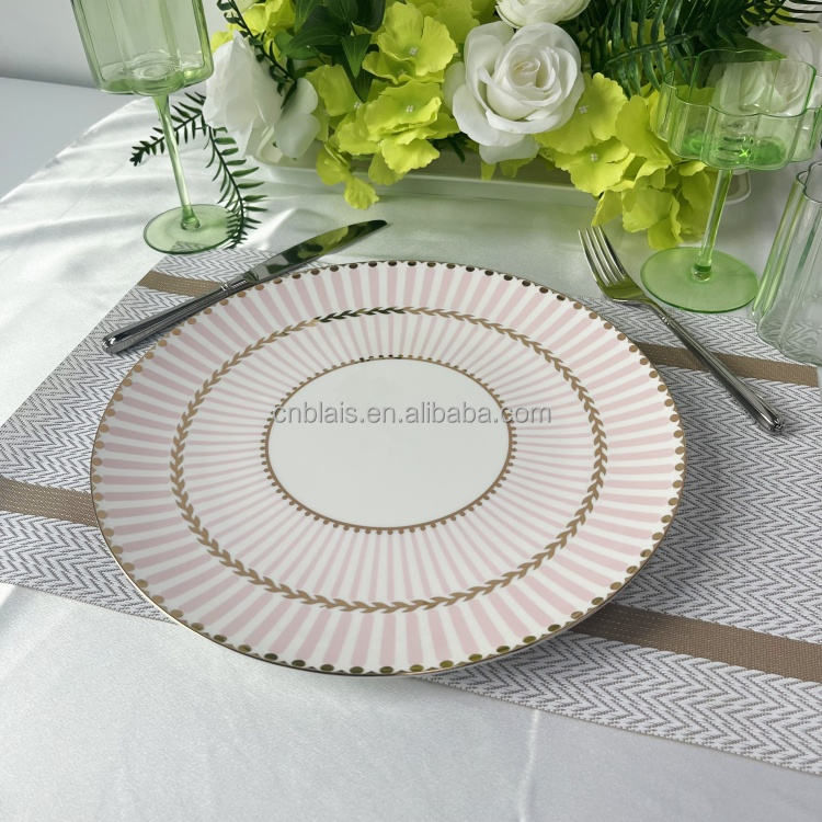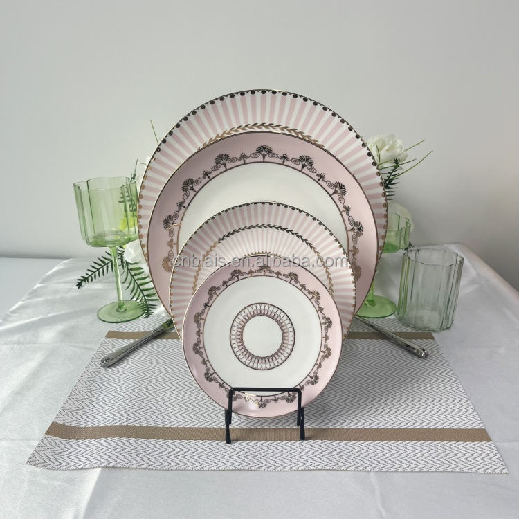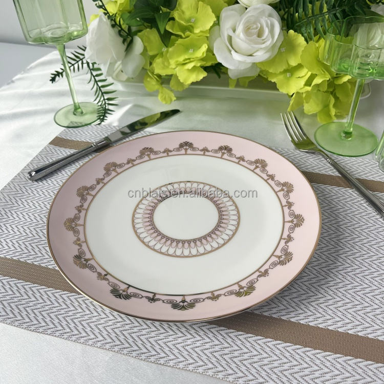 Ensembles de vaisselle en porcelaine osseuse de luxe légère et personnalisée de haute qualité Assiette de présentation rose de style nordique pour table de mariage BLAIS