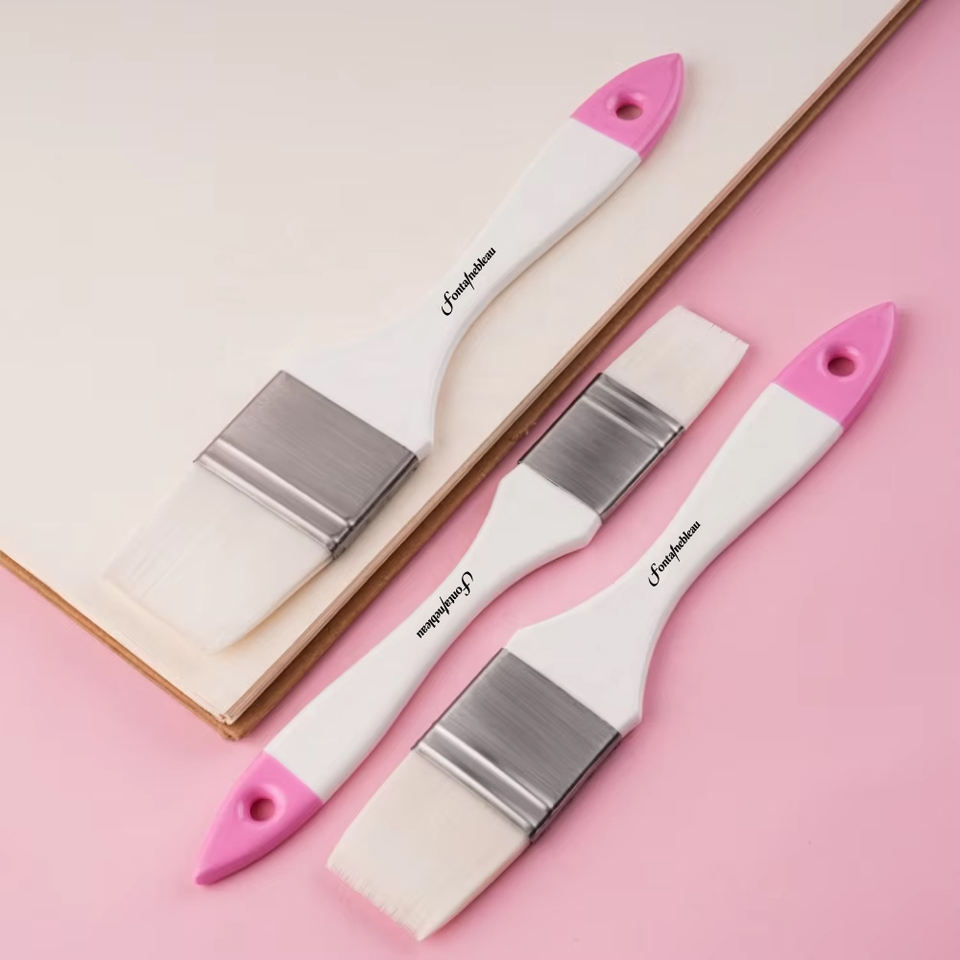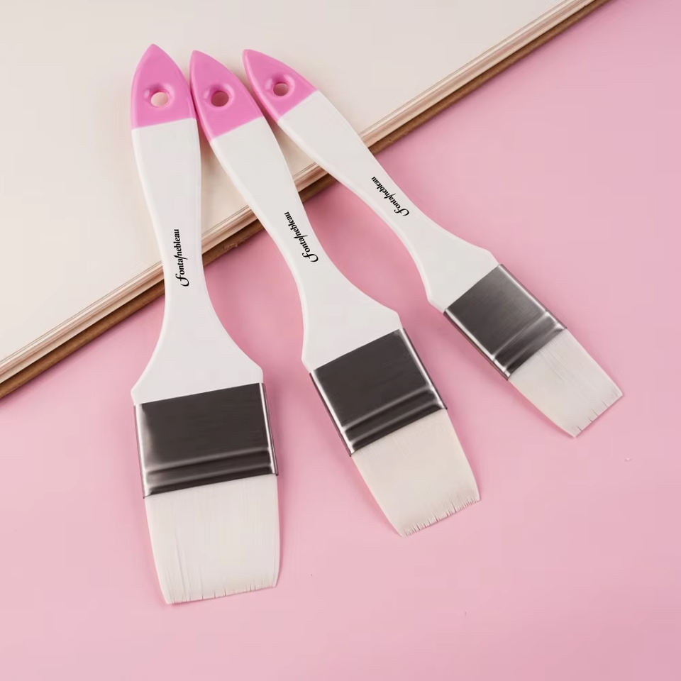Pinceaux de peinture professionnels de haute qualité avec logo personnalisé, 1 pouce, 1,5 pouce, 2 pouces, à manche en bois, avec queue rose, grand format plat, pour artistes
