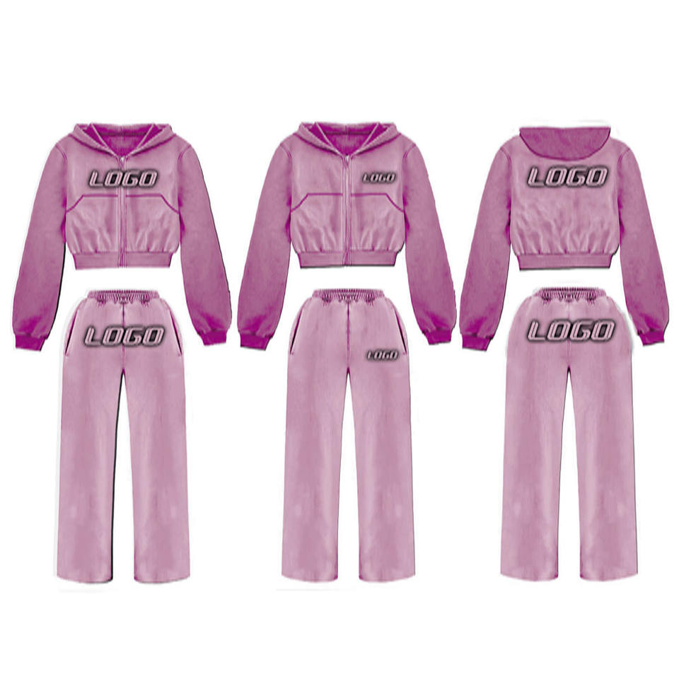 Survêtement de jogging à capuche zippé 100% coton avec logo personnalisé de haute qualité Survêtements d'hiver écologiques à fermeture éclair pour femmes