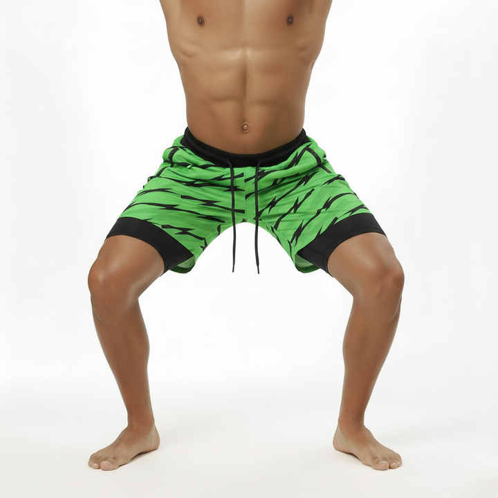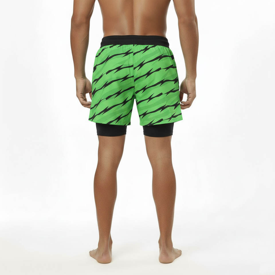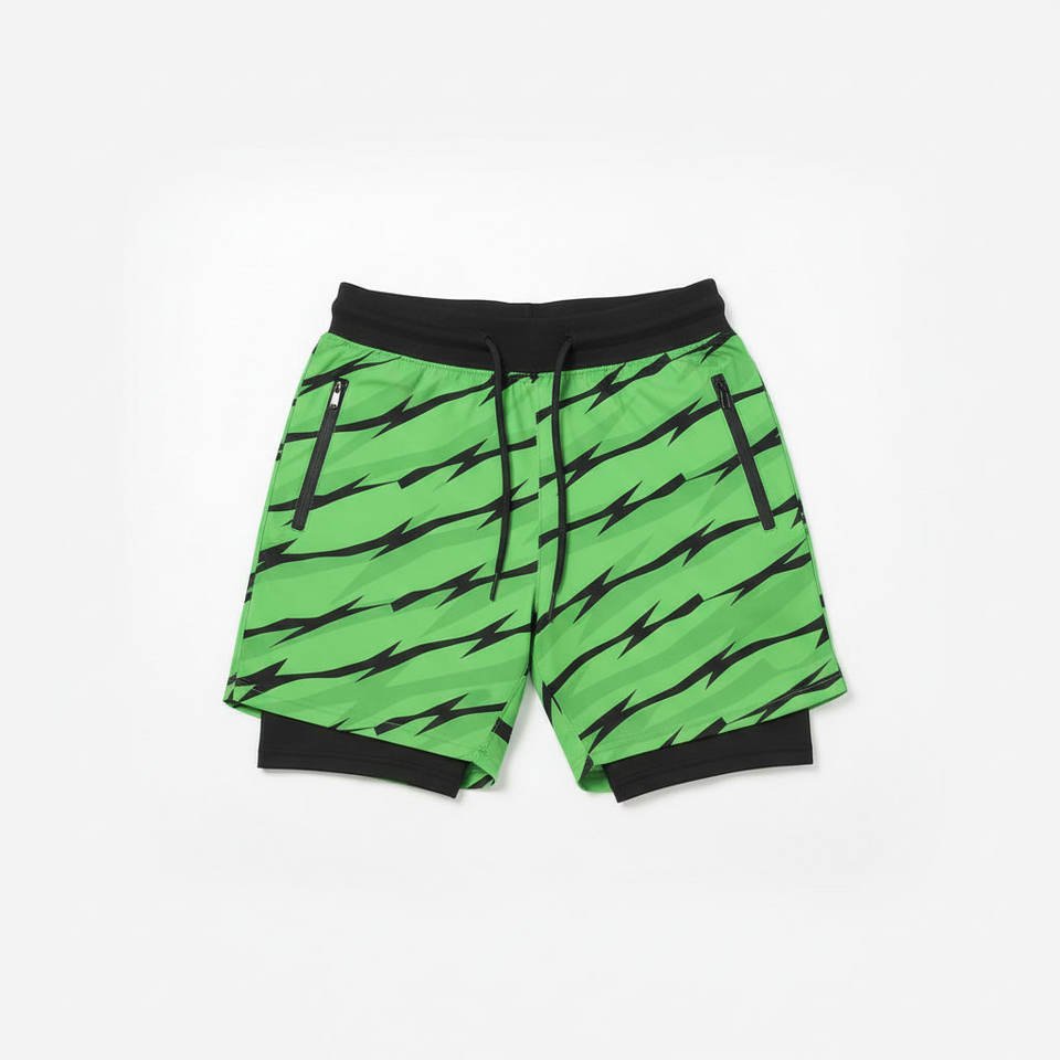 Shorts de sport en polyester 2 en 1 de haute qualité avec logo personnalisé, pour hommes, pour la gym, la course à pied, avec doublure de compression.