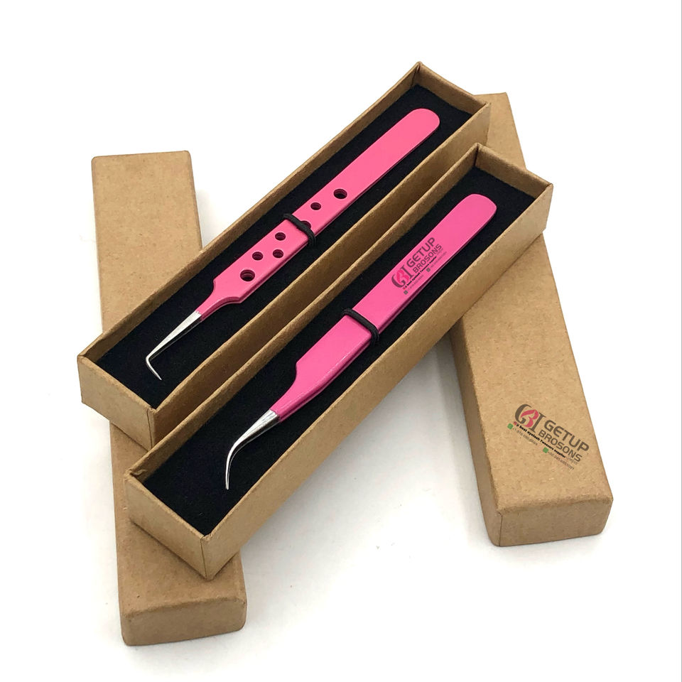 Revêtement en poudre rose de haute qualité 90 degrés Logo personnalisé pince à épiler d'extension de cils en acier inoxydable incurvée Instruments de beauté