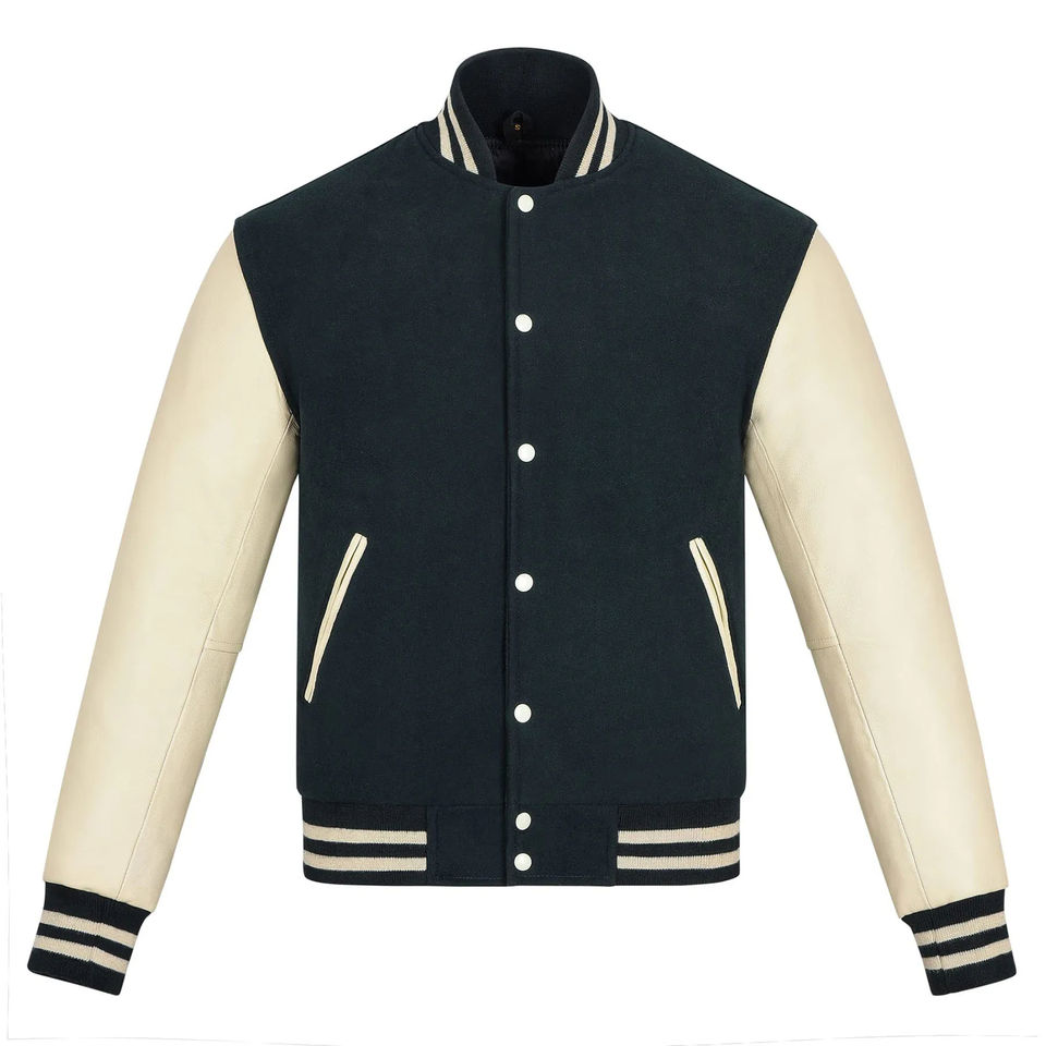 Veste de baseball varsity personnalisée de haute qualité avec logo pour hommes, en toile, style universitaire.