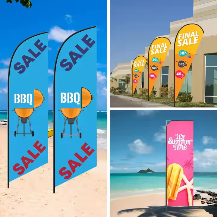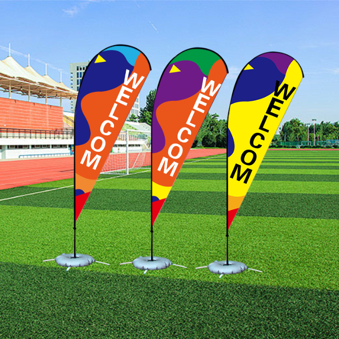 Drapeau de plage rectangulaire en forme de larme de haute qualité avec logo personnalisé, drapeau à franges, drapeau extérieur avec piquet