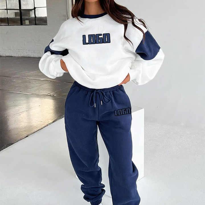 Ensemble de survêtement deux pièces de haute qualité avec logo personnalisé, couleur unie, pour femme, comprenant un sweat à capuche et un pantalon de jogging