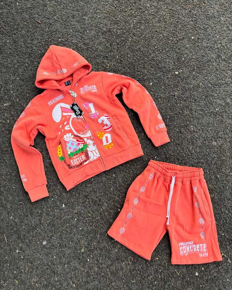Survêtement Hip Hop de haute qualité avec logo personnalisé Lavage à l'acide DTG Pull à capuche en coton délavé Ensemble de shorts respirant Vintage