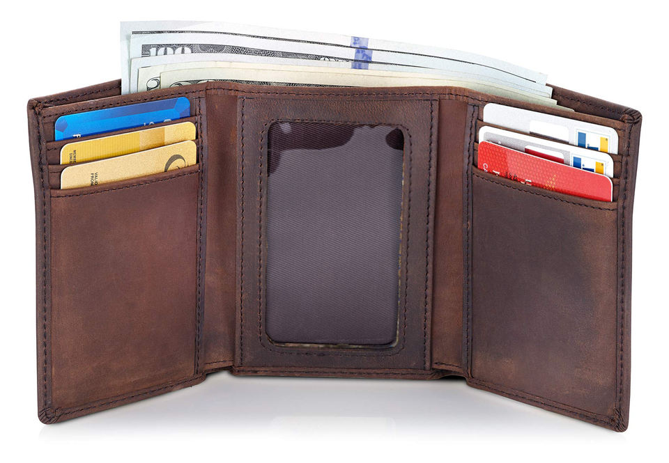 Portefeuille en cuir à trois volets personnalisé de haute qualité avec logo, portefeuille d'affaires multi-cartes, vente en gros de portefeuilles en cuir véritable