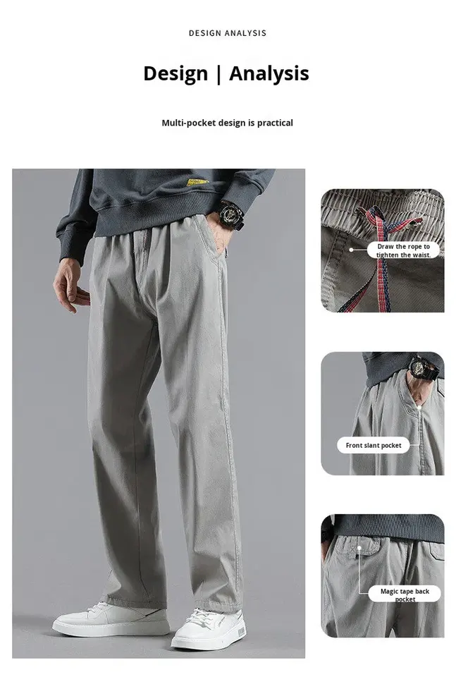 Pantalon cargo décontracté en toile de coton léger de haute qualité avec logo personnalisé pour la randonnée en plein air, taille plus, coupe ample, pour hommes