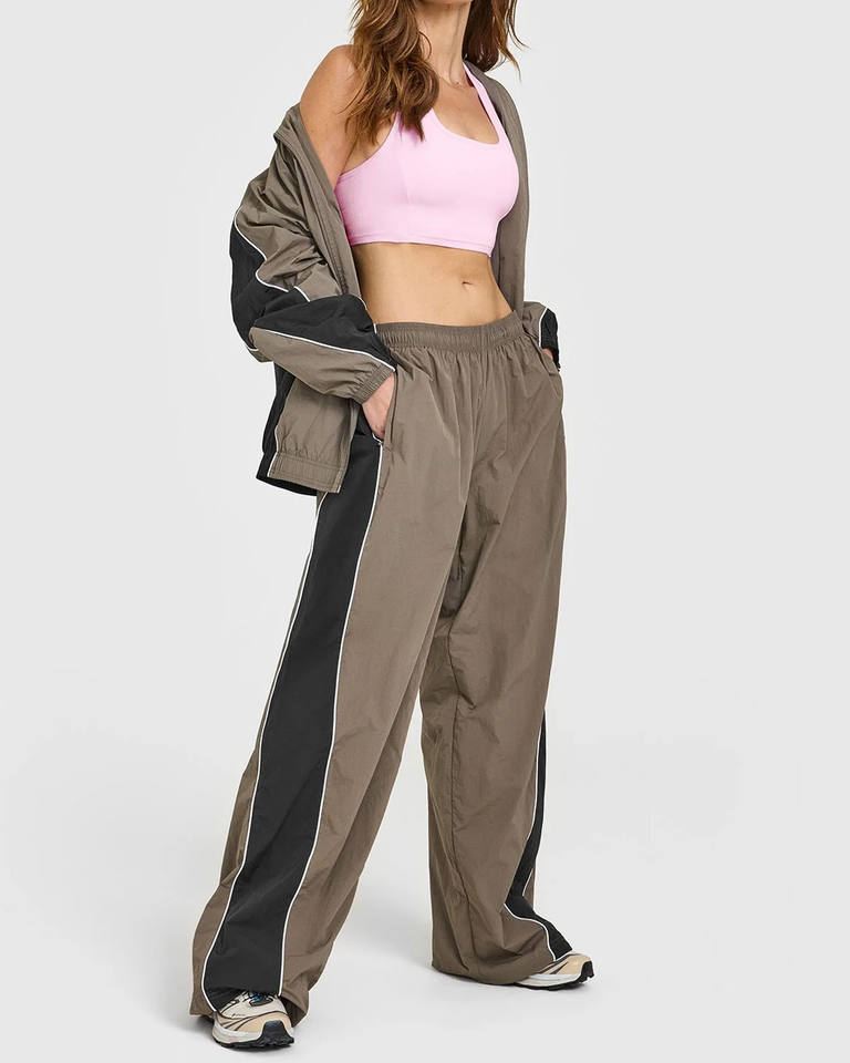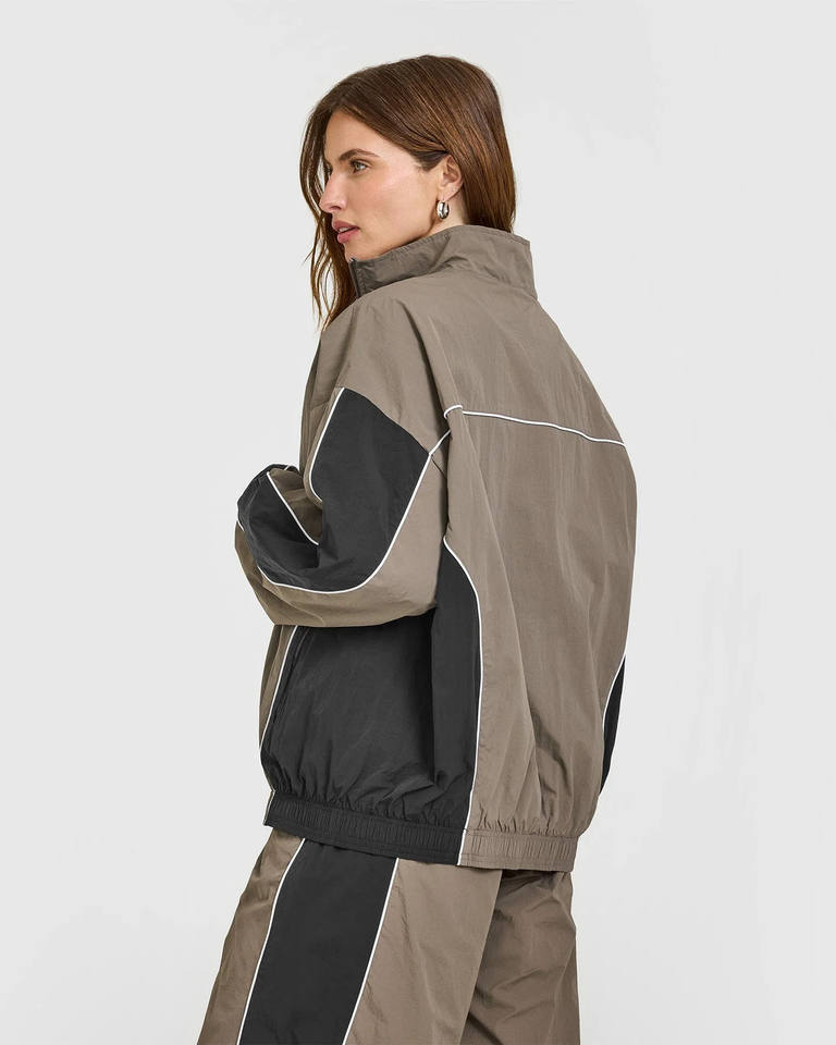 Survêtements pour femmes de haute qualité avec logo personnalisé, veste de survêtement tissée surdimensionnée à passepoil et pantalon, vêtements de sport respirants, ensembles de survêtement pour femmes
