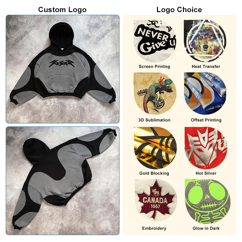 Sweat à capuche surdimensionné en polyester lourd avec impression de logo personnalisé de haute qualité, col rond, cordon de serrage, imperméable, automne