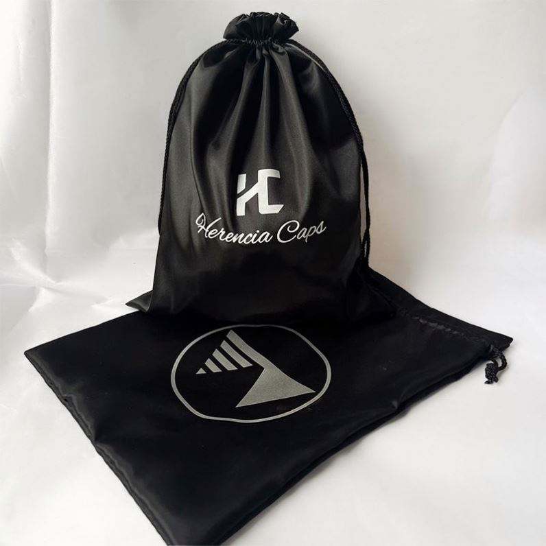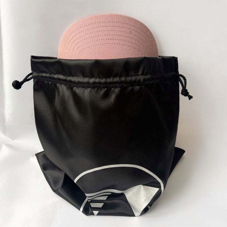 Sac à poussière en polyester de haute qualité avec logo personnalisé imprimé, cordon de serrage pour perruque, casquette de baseball, sac en satin de soie