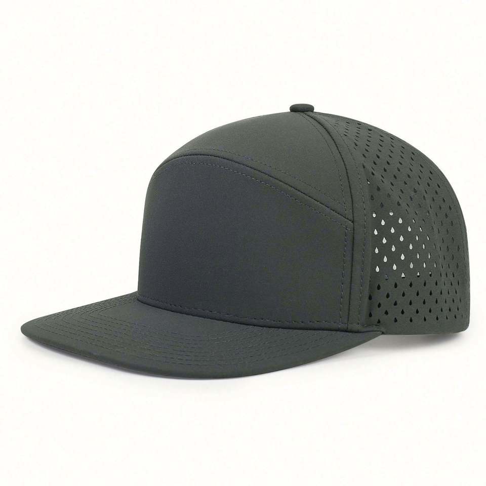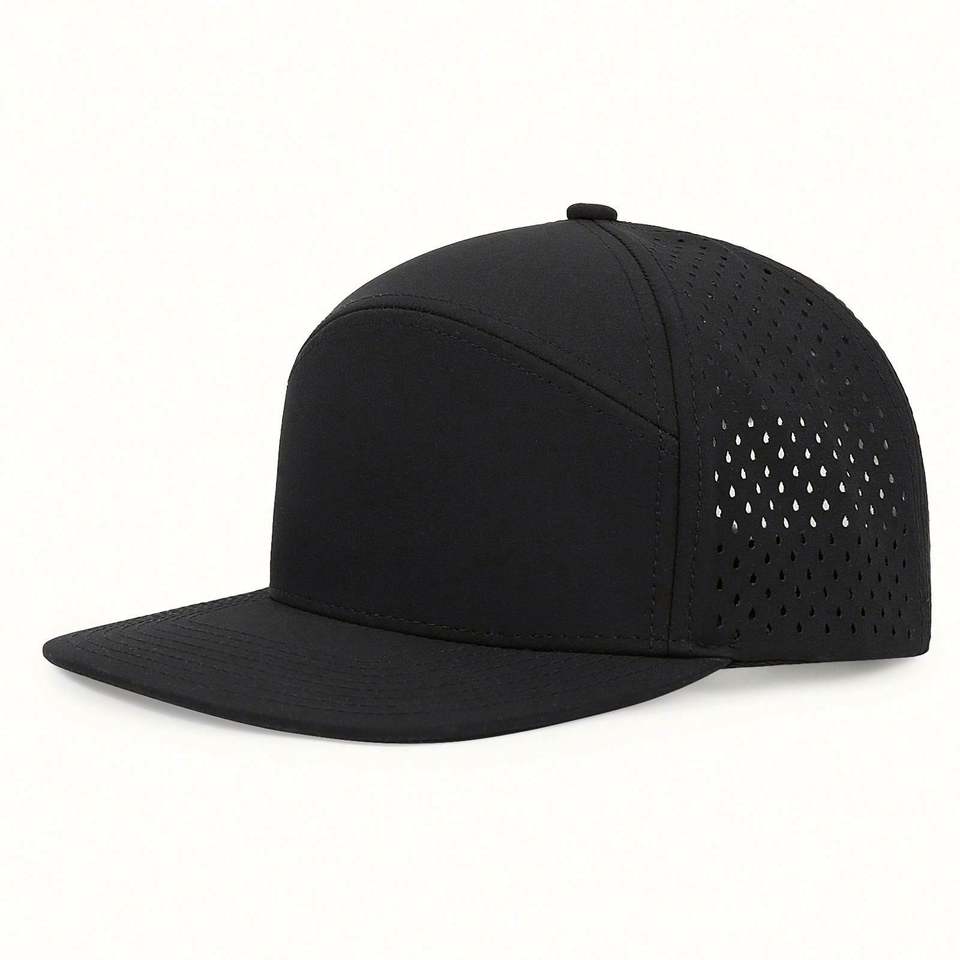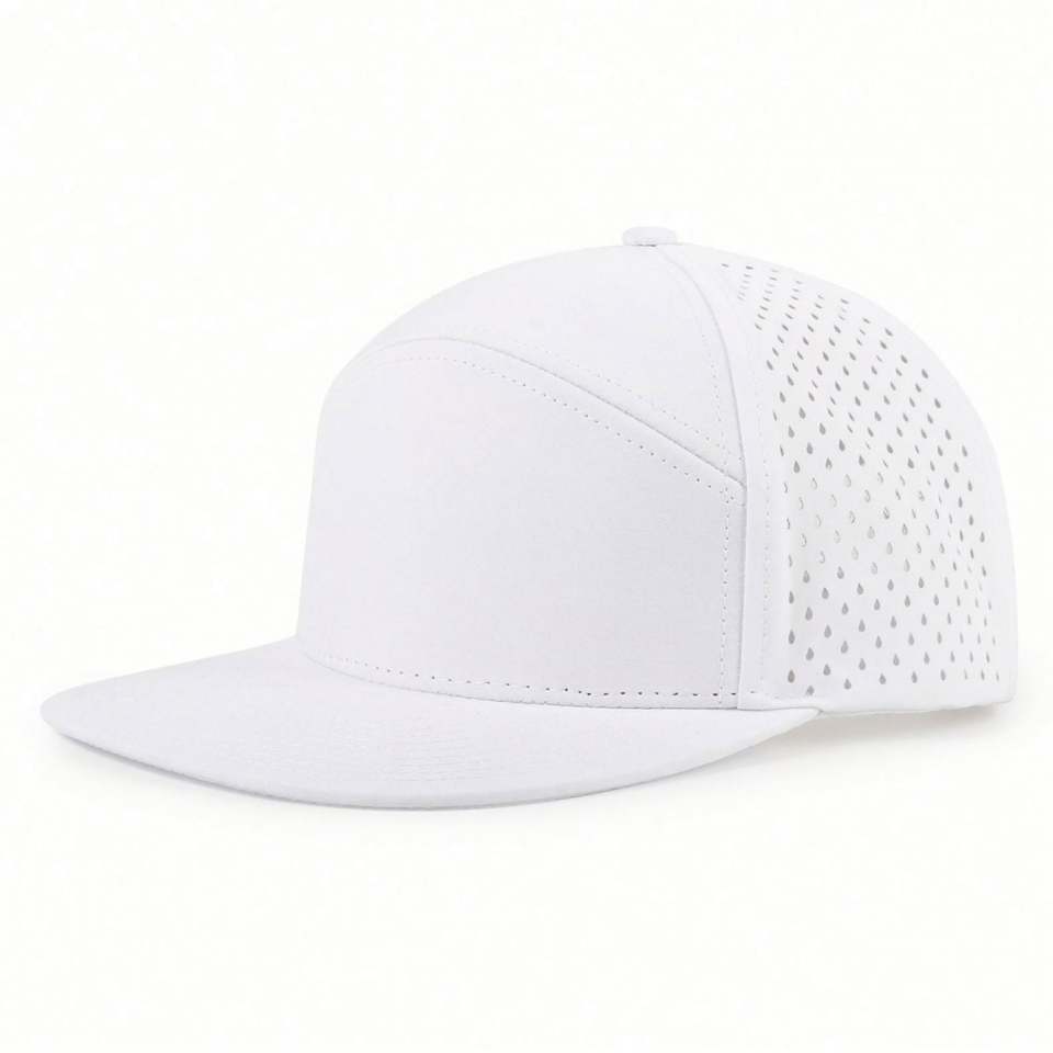 Casquette de baseball unisexe personnalisée de haute qualité avec logo, style sportif, perforations laser, 7 panneaux, visière plate, imperméable