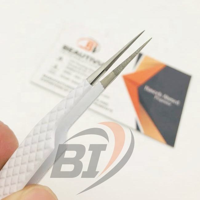 Pince à épiler en acier inoxydable avec logo personnalisé de haute qualité avec isolation de la poussière de diamant emballage personnalisé à pointe pointue